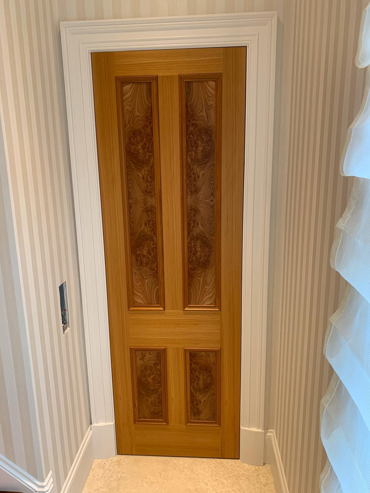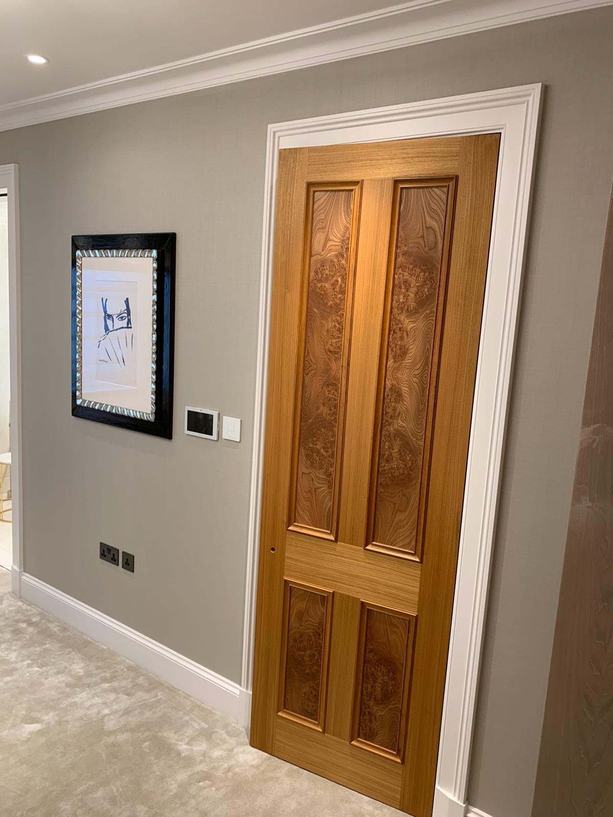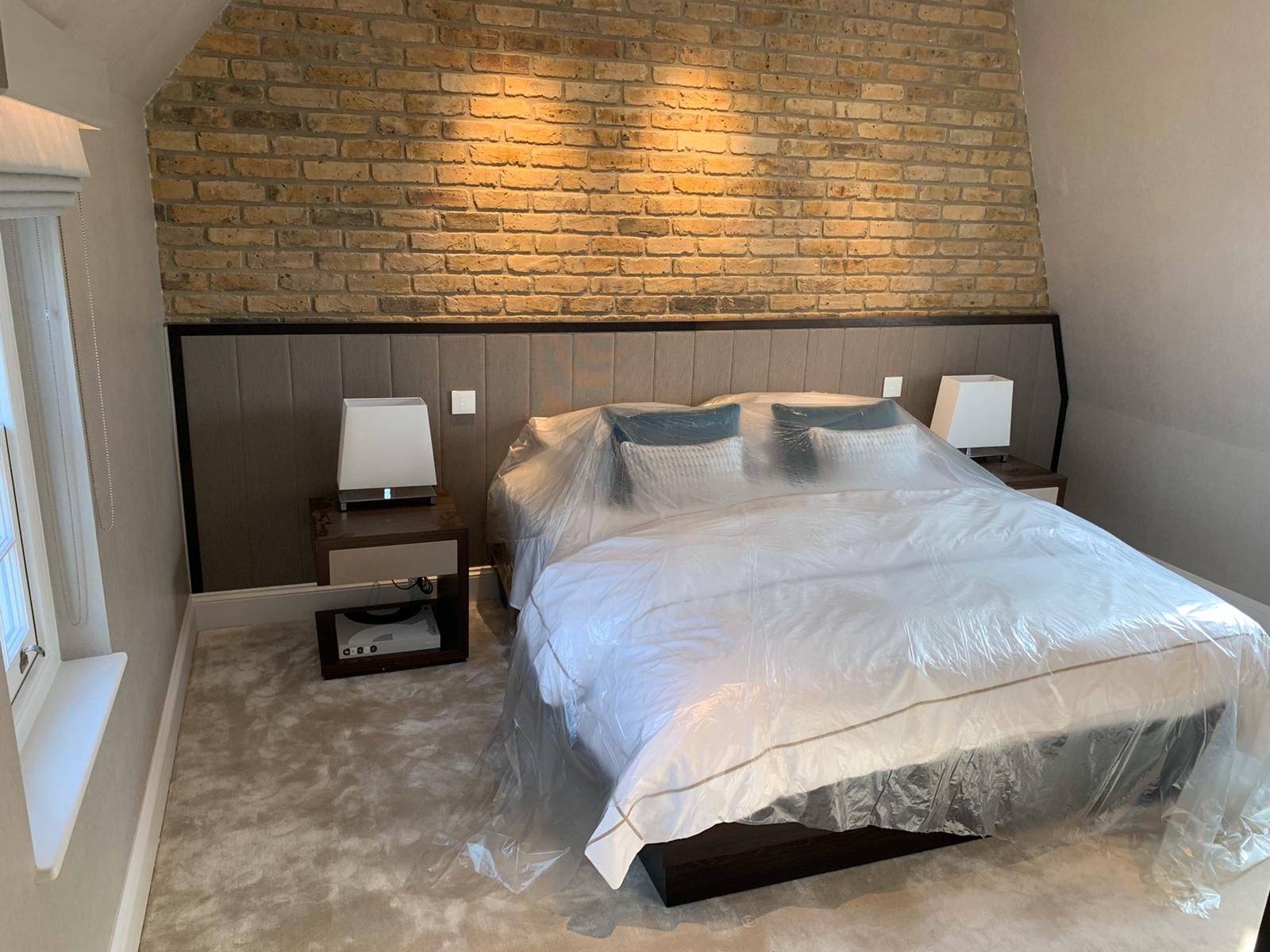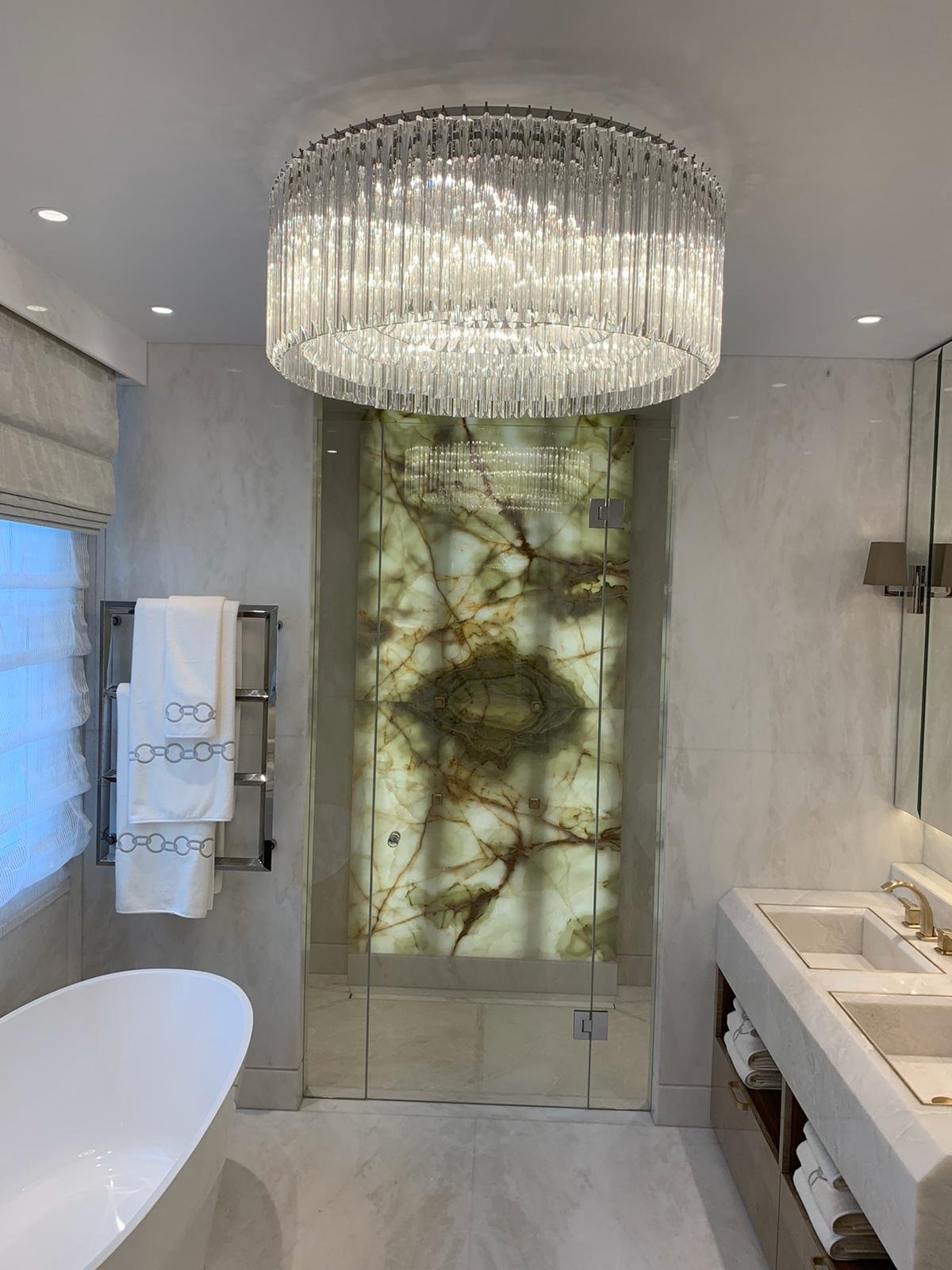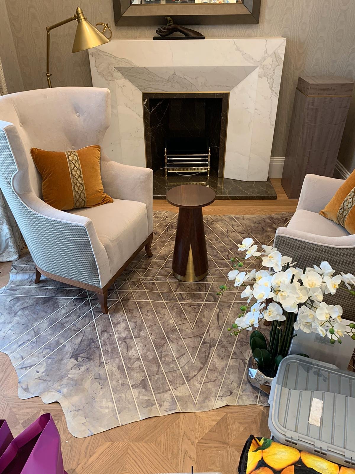 Drawing inspiration from the tailoring and craftsmanship, the design marries a rich colour palette with thoughtful detailing. Dark herringbone patterned floors reside alongside bespoke cabinetry in walnut burr, handcrafted crystal chandeliers and subtle pinstripe walls. Fixtures and Furniture supplied by TAFD from ITALY, worked very closely with the designer & client himself to meet all the requirements.